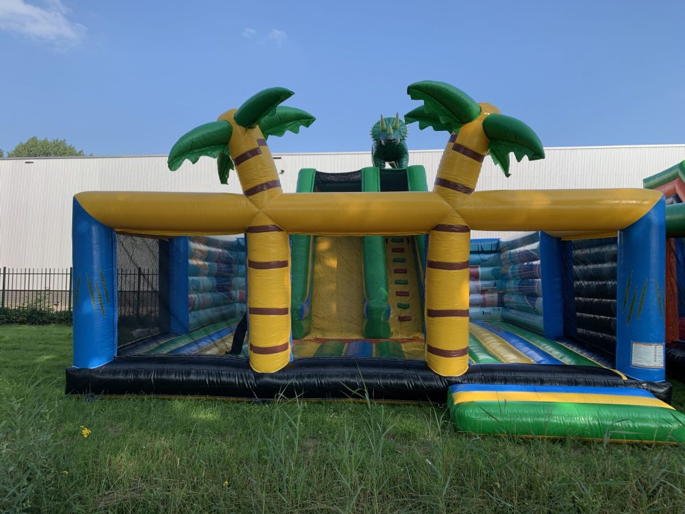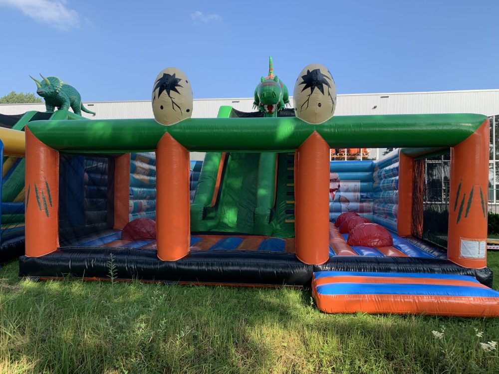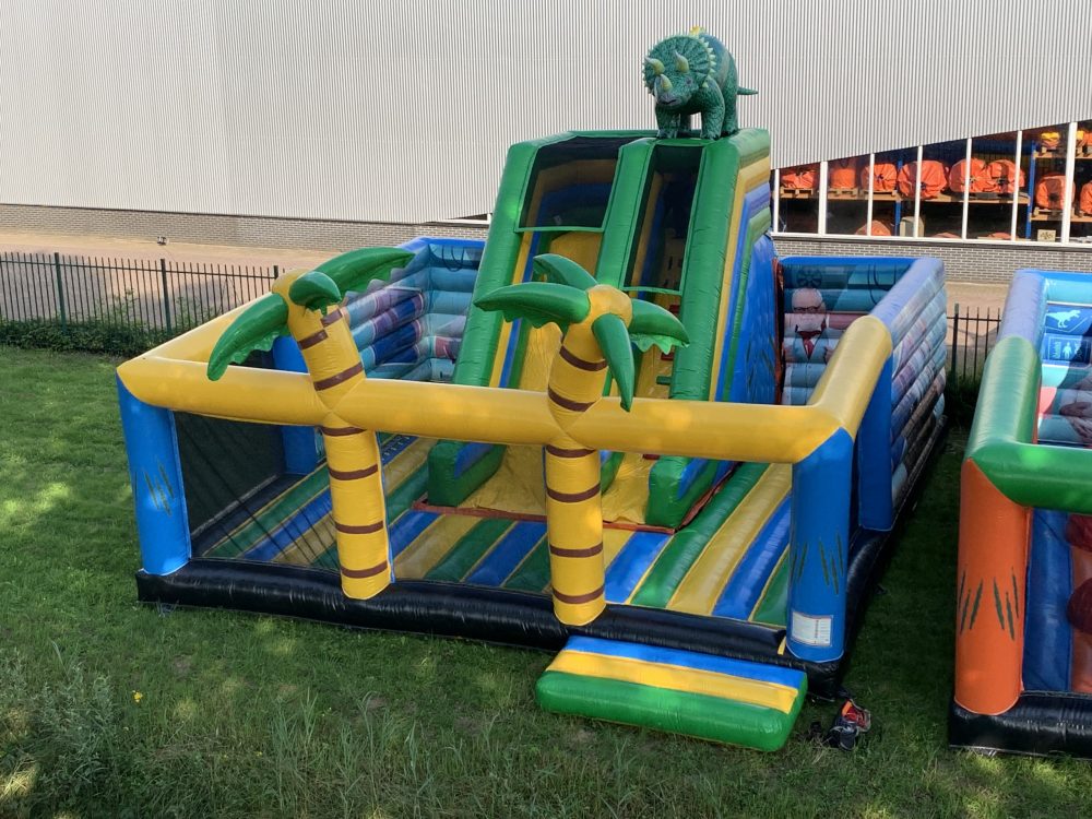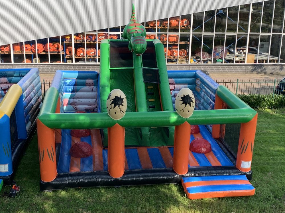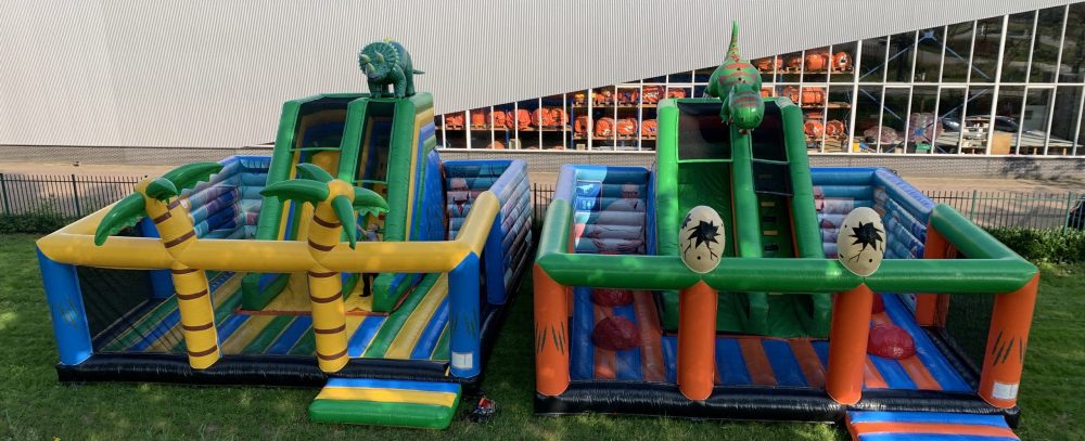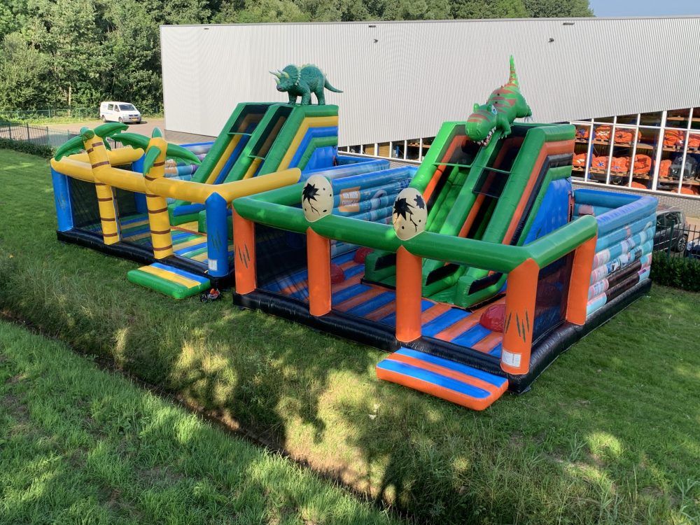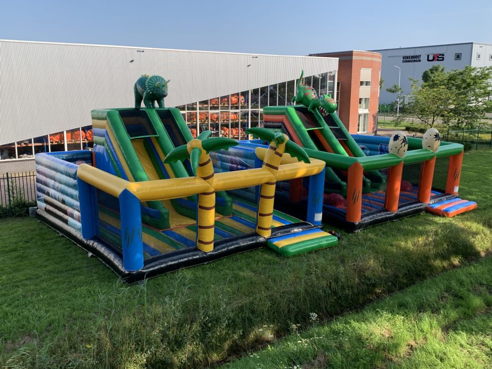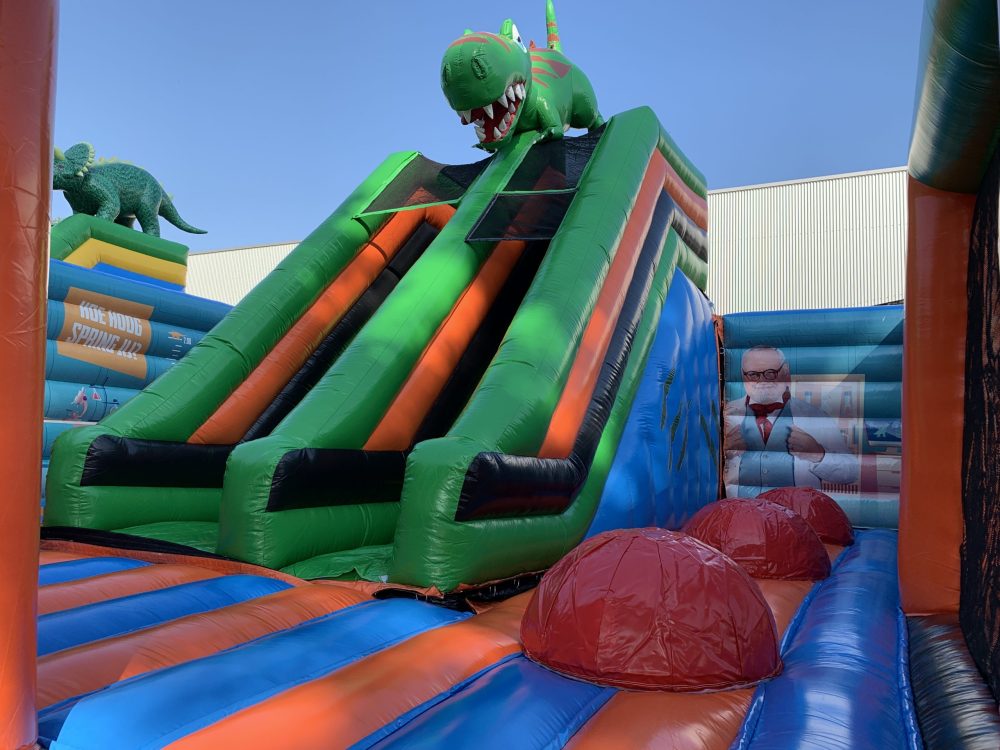 Voor een Nederlandse relatie hebben wij deze twee grote springkussens Active Center Dino op maat geproduceerd. Deze twee springkussens zijn volledig naar de wensen van de klant uitgevoerd. De opdracht was dat er zoveel mogelijk kinderen tegelijk op het springkussen moesten kunnen. Daarnaast moest deze in de beschikbare ruimte passen en volledig binnen het Dino thema passen.