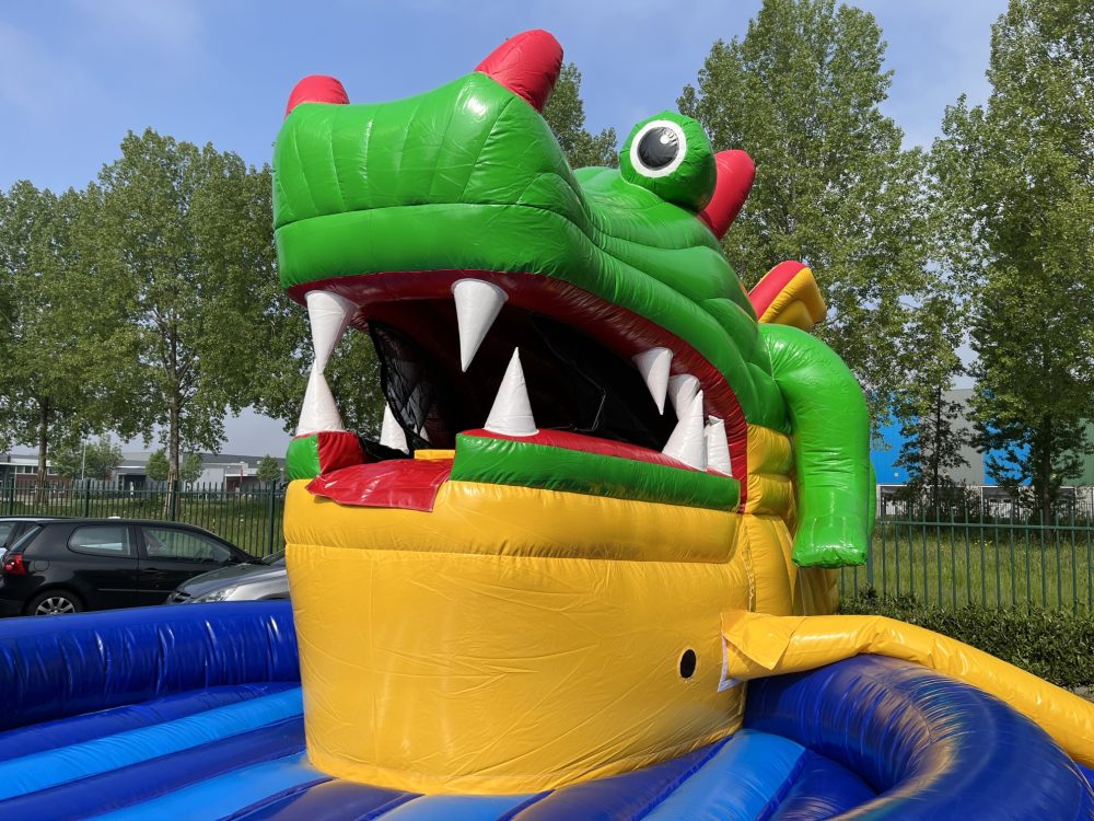 Deze leuke draak met bewegende bek van Jump Factory is geschikt voor elk evenement. De mond van deze draak is voorzien van een extra blower met timer waardoor deze open en dicht gaat. Er kunnen een paar kindjes tegelijk de bek naar binnen klimmen. Vervolgens zal de bek automatisch dicht gaan en kunnen de kinderen aan de achterkant weer naar buiten glijden. Erg leuk en spannend voor de kinderen!