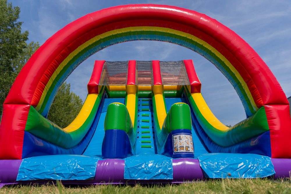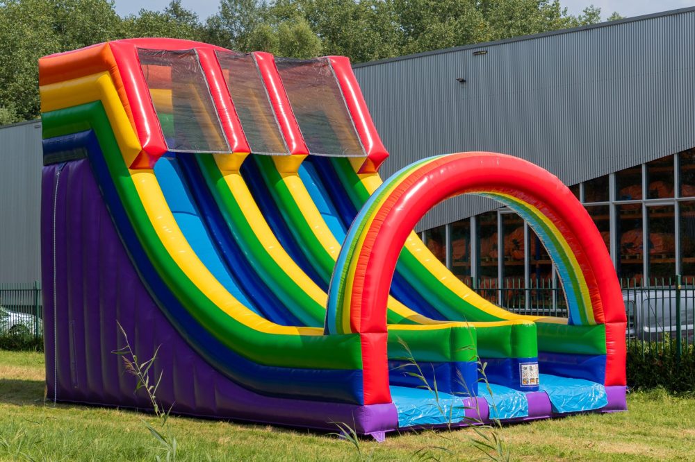 Deze indrukwekkende dubbele opblaasbare glijbaan biedt eindeloos speelplezier voor twee personen tegelijk! Klim in het midden omhoog via de stevige trappen en kies een van de twee glijbanen om naar beneden te suizen. Dankzij zijn 7 meter hoogte en het opvallende thema is deze glijbaan een echte blikvanger op elk evenement. De kleurrijke en leuke thema’s maken het een magneet voor kinderen en zorgen voor een avontuurlijke sfeer. Ideaal voor feestjes, evenementen en andere speciale gelegenheden. Deze glijbaan staat garant voor urenlang speelplezier en een onvergetelijke ervaring voor alle kinderen!