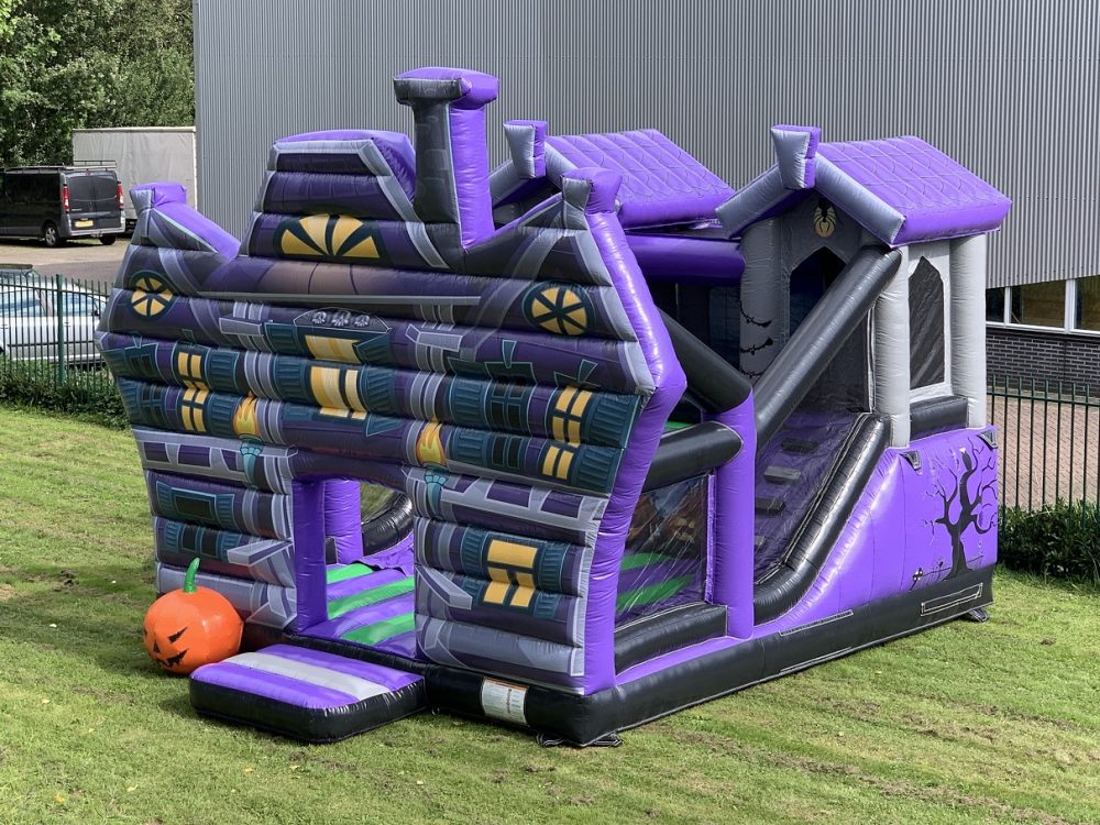 Dit mooie springkussen Multifun XL Spookhuis past perfect in ieder Halloween of griezel feestje. Het springkussen is voorzien van mooie opdrukken en en gave 3d figuren. Aan de binnenzijde van dit spookhuis kunnen de kinderen springen, klimmen en glijden.