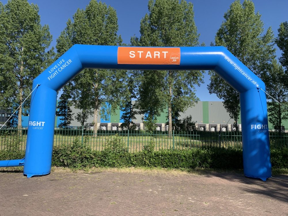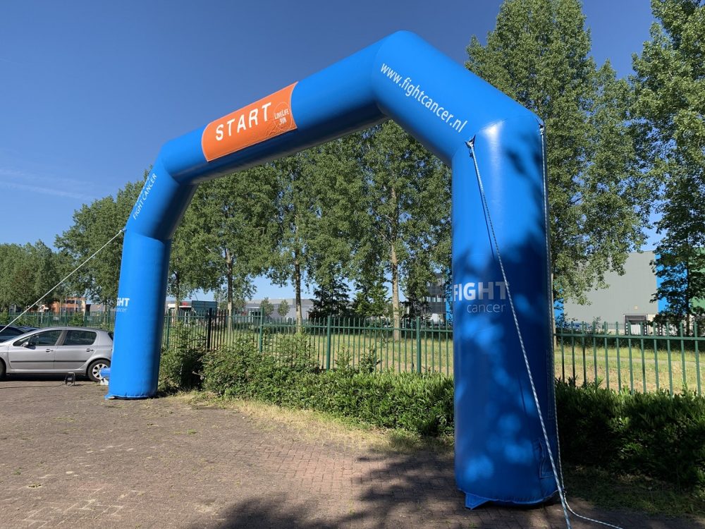 In opdracht van Fight Cancer hebben we deze opblaasbare boog op maat geproduceerd. Fight Cancer was op zoek naar een tweetal opblaasbare bogen om in te zetten bij hun evenementen door het hele land. Samen hebben we een design uitgewerkt en uiteindelijk twee opblaasbare bogen mogen produceren. Eén boog van 6×4 meter en een boog van 10×5,5 meter. De bogen zijn beide voorzien van klittenband banners zodat ze per evenement de boodschap kunnen wisselen.